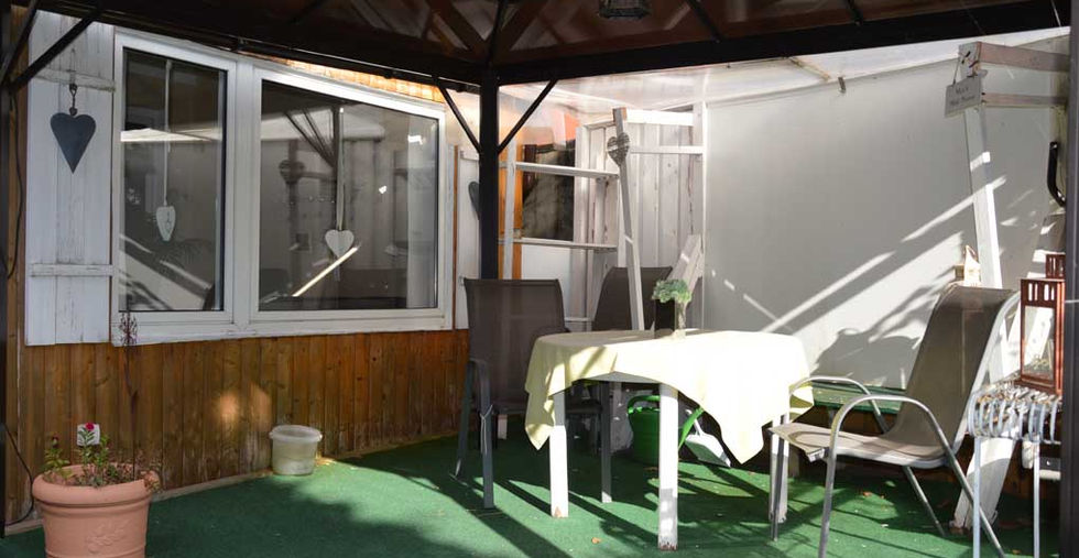 Auf dem ca. 173 m² großen Grundstück ist eine gemütliche Sitzecke und ein Schuppen, derzeit als Hauswirtschaftsraum genutzt, untergebracht.